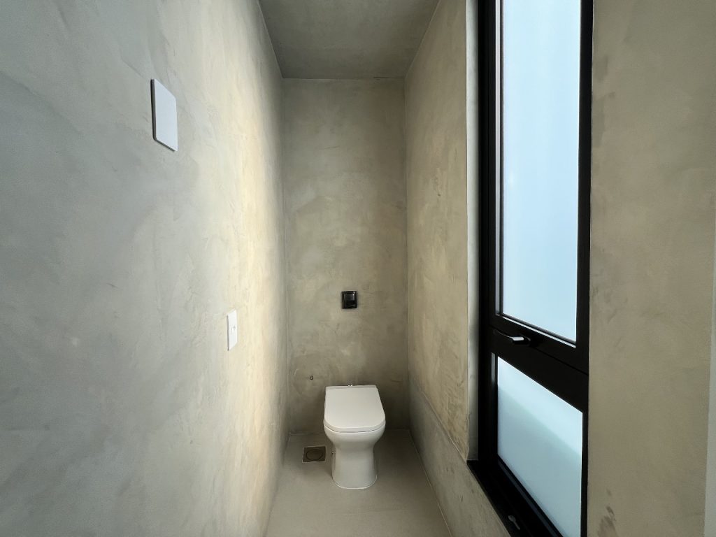– Paredes dos banheiros em microcimento, sem rejuntes e de fácil manutenção;